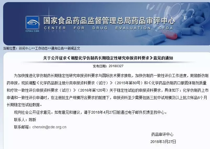 四、CDE-關于公開征求《調整化學仿制藥長期穩定性研究申報資料要求》意見的通知