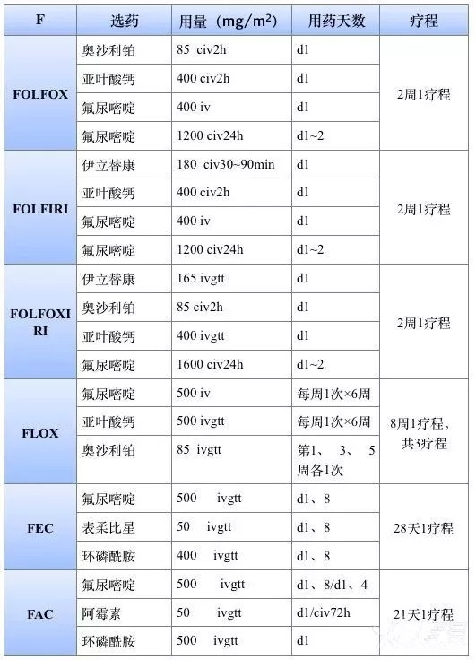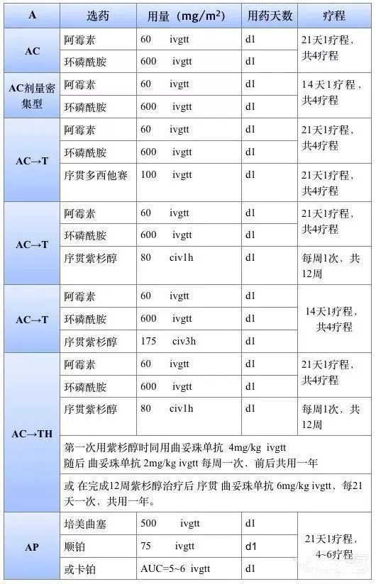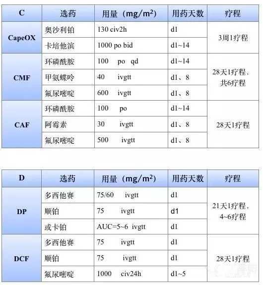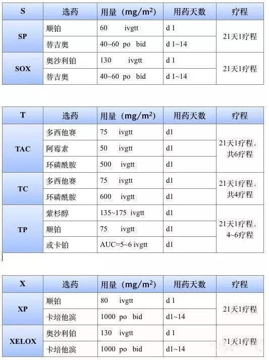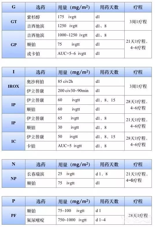 2017版csco和nccn指南常見的化療方案