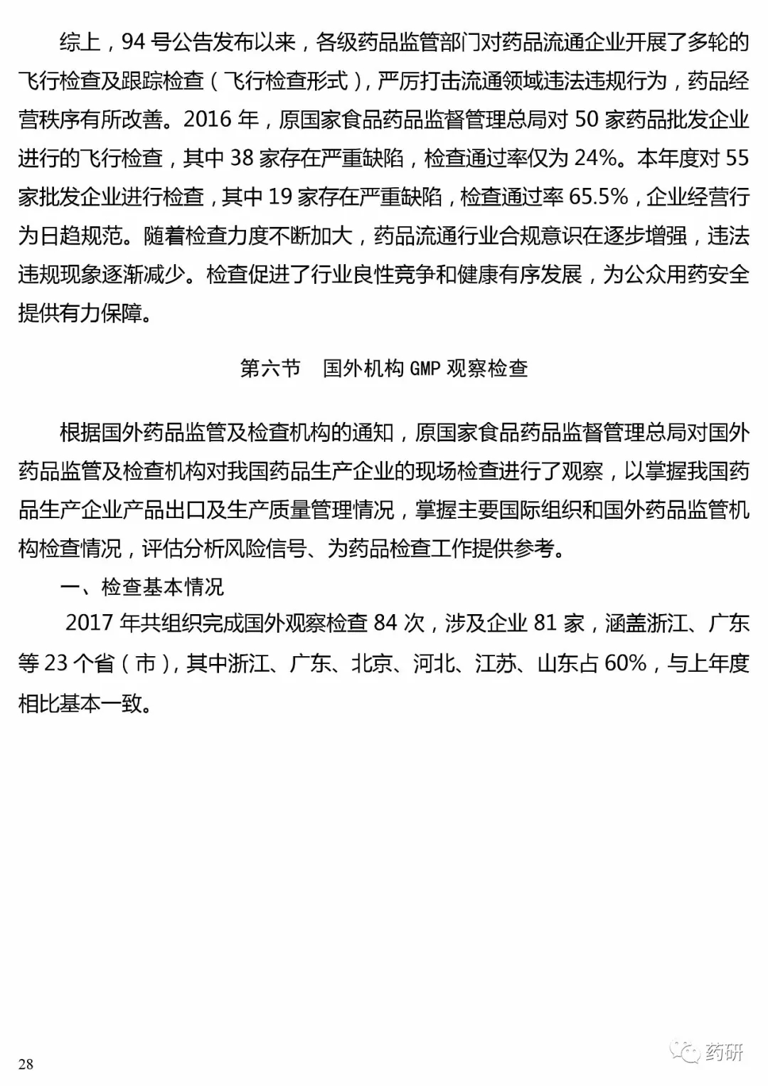 國家藥監(jiān)局2017年度藥品監(jiān)查報(bào)告
