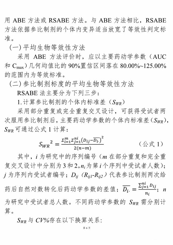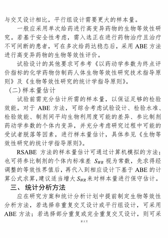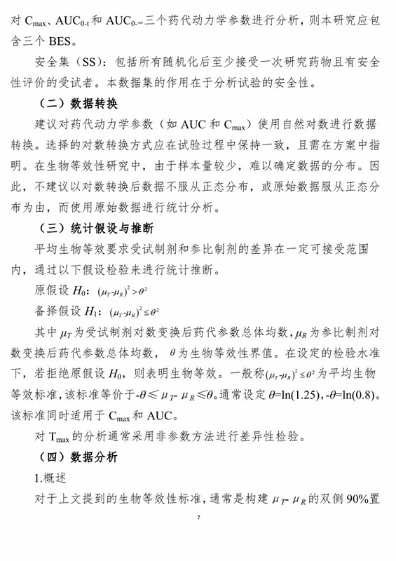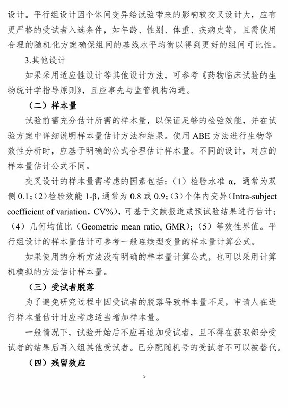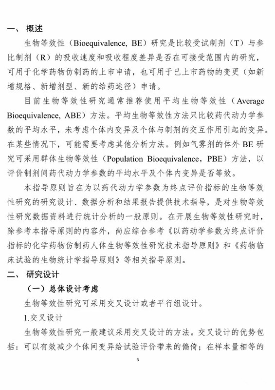 1、《生物等效性研究的統計學指導原則(征求意見稿)》