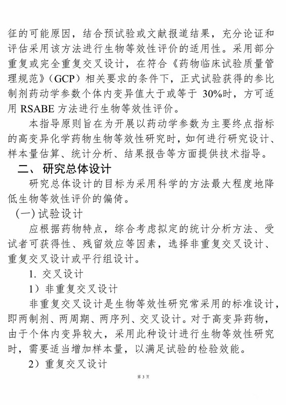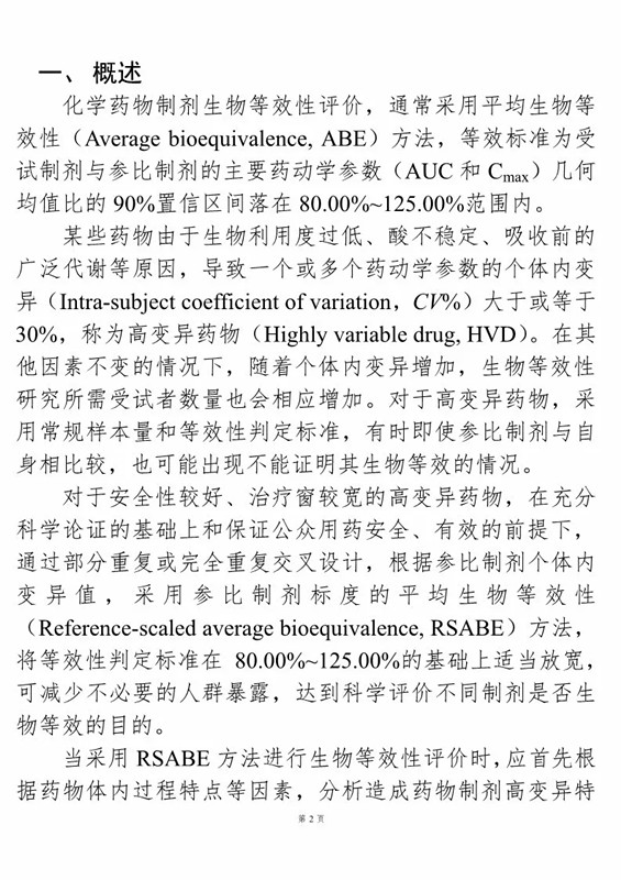 2、《高變異藥物生物等效性研究技術指導原則(征求意見稿)》