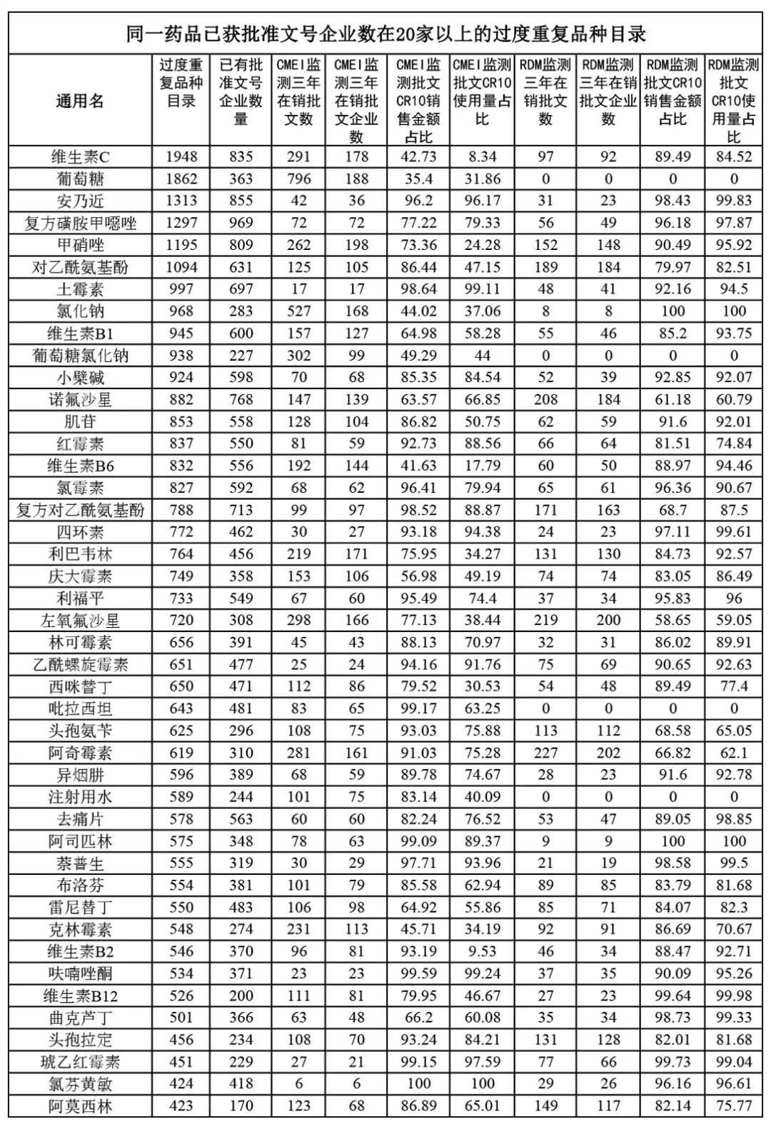 批文數(shù)超過(guò)500個(gè)的有40個(gè)品種;