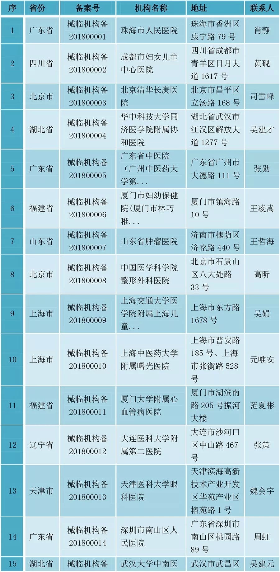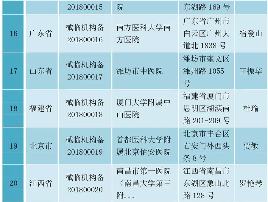 醫(yī)械臨床試驗(yàn),獲CFDA備案的20家醫(yī)院名單